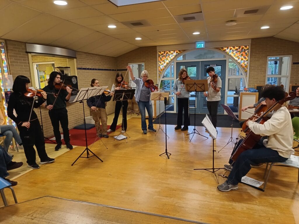 Op 10 november 2024 troffen de tieners en volwassenen elkaar in een Kamermuziekmiddag op de Paulusschool. Er werd van blad gespeeld, er klonk het Bachianas Brasilairas nr 5 in een bewerking voor 10 strijkers van Villa Lobos, het 2e sextet van Brahms opus 36, en er speelden diverse kwartetten en trio’s.